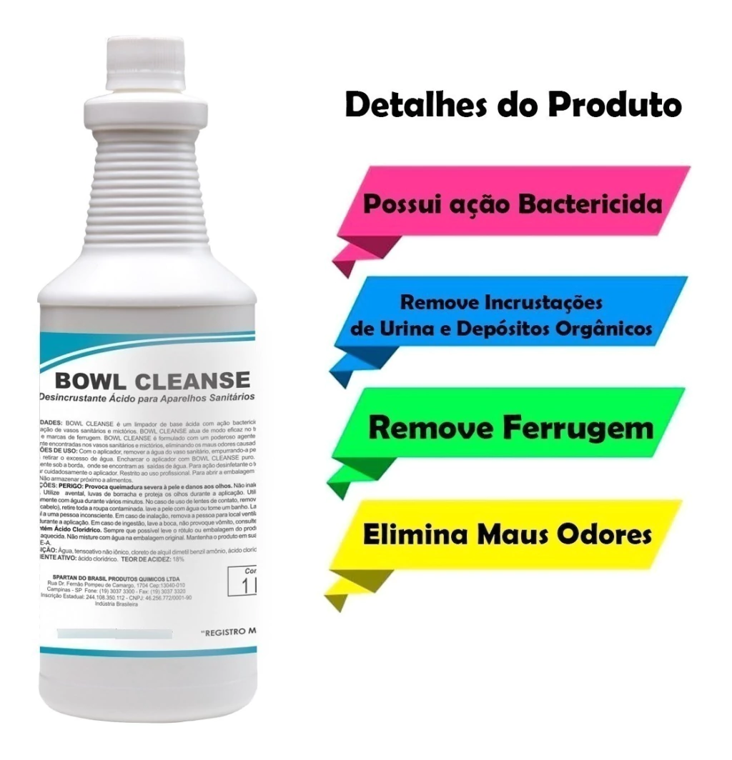 BOWL CLEANSE é formulado com um poderoso agente bactericida que desinfeta, agindo sobre bactérias normalmente encontradas nos vasos sanitários e mictórios, eliminando os maus odores causados pelas mesmas.