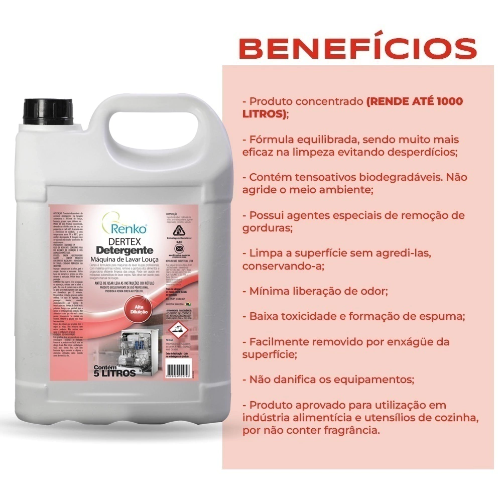Produto indispensável para lavagem automática de louças, bandejas, pratos, copos, talheres, etc. Sua dosagem deve ser ajustada no dosador automático do equipamento a ser utilizado.