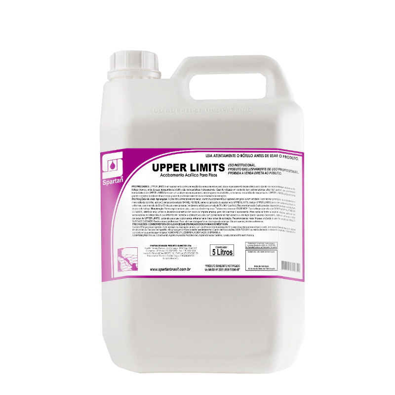 UPPER LIMITS é um acabamento acrílico termoplástico com poliuretano para pisos, especialmente desenvolvido para atender as necessidades de áreas de tráfego intenso, onde dureza, transparência e brilho são características indispensáveis. Quando utilizado em conjunto com polimentadoras ultra high speed, os polímeros termoplásticos de UPPER LIMITS fornecem um acabamento transparente, antiderrapante de alto brilho, com dureza e durabilidade insuperáveis. UPPER LIMITS proporciona grande economia de mão de obra e tempo, pois reduz substancialmente as necessidades de remoções.